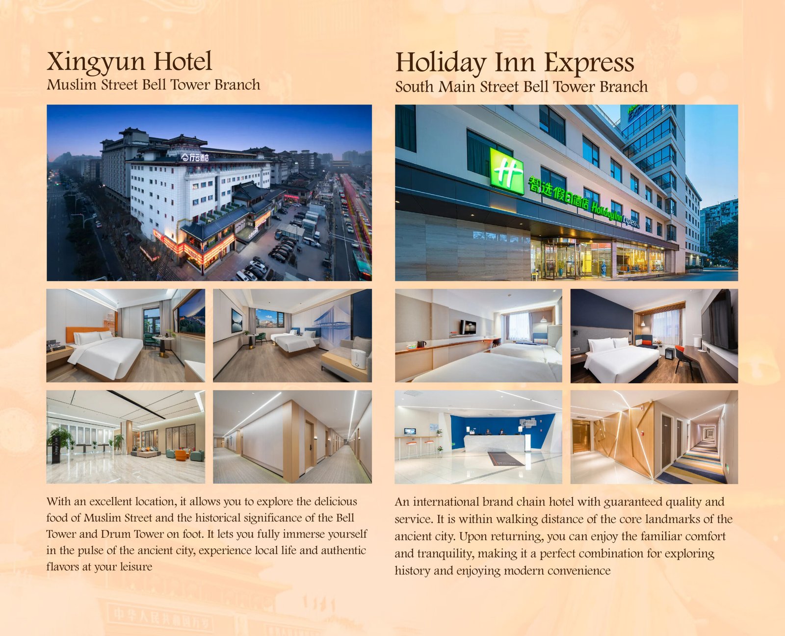 Bell Tower and Drum Tower Square – Muslim Street  – Premium Hanfu & makeup and styling – Night tour of Tang Paradise. Optional activities: Dumpling-making experience + Tang Palace Dumpling Banquet. Meals: Breakfast. Accommodation: Xi’an.